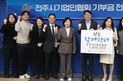 코리아타임뉴스 전북취재본부 | 전주지역 기업인들이 지역 상권과 산업단지 노동자들을 응원하는 ‘전주함께장터’ 프로젝트에 동참했다. 전주시와 전주시기업인협회(회장 강은주)는 24일 전주시장실에서 우범기 전주시장과 협회 관계자 등이 참석한 가운데 ‘전주함께장터 기부금 전달식’을 가졌다. 이 자리에서 전주시기업인협회는 회원사들의 뜻을 모아 마련한 총 500만 원의 기부금을 시에 전달했다. ‘전주함께장터’ 프로젝트는 기업과 공공기관, 민간단체, 시민 등 다양한 주체와 협력해 지역 소비를 촉진하고, 골목상권과 전통시장, 노동자 등 지역경제의 주요 축을 지원하는 범시민 운동이다. 현재 지역 상권 매출을 높이는 동시에, 나눔 문화를 확산해 지역경제 회복을 도모하는 릴레이 형식으로 추진되고 있다. 이날 후원한 기부금은 ‘전주함께장터’ 프로젝트를 통해 추진 중인 산업단지 근로자 아침밥 제공 사업 등 취약 근로자 복지 지원 등에 활용될 예정이다. 시는 앞으로도 ‘전주함께장터’ 프로젝트를 통해 기업과 시민이 함께하는 착한 소비 운동을 지속적으로 추진하고, 산업단지 근로자 등 노동 취약계층을 응원하는 다양한