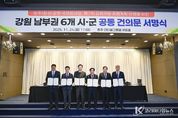 코리아타임뉴스 김택호 기자 | 강원 남부권 6개 시군(원주·횡성·영월·평창·정선·태백)은 24일 오전 11시, 호텔인터불고 원주에서 국토교통부의 ‘제7차 공항개발 종합계획’에 ‘원주(횡성)공항의 국제화 사업 반영’을 요청하는 공동 건의문을 채택했다. 이날 서명식에는 원강수 원주시장, 김명기 횡성군수, 이상호 태백시장, 최명서 영월군수, 심재국 평창군수, 최승준 정선군수 등 강원 남부권 6개 시군의 시장·군수가 모두 참석해 원주(횡성)공항 국제화 추진에 뜻을 모았다. 이번 공동 건의문 채택은 원주(횡성)공항 국제화가 침체된 강원 남부권 경제를 되살리고 공동 번영을 이끌 핵심 인프라라는 인식을 공유하고, 이에 대한 정부의 적극적인 지원과 조치를 요청하기 위해 마련됐다. 건의문의 주요 내용은 ①강원 남부권의 절실한 지역 현안과 새로운 돌파구 필요성 ②원주(횡성)공항의 경제적 파급 효과 ③국토교통부의 선제적 결단 촉구 등이며, 강원특별자치도를 통해 국토교통부에 전달될 예정이다. 원주(횡성)공항의 시설 개선으로 국제선 유치 여건이 갖춰지면, 강원 남부권 지역 경제 활성화는 물론, 수도권과 비수도권 간 격