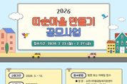 코리아타임뉴스 전남취재본부 | 순천시는 주민 주도의 마을문제 해결과 마을공동체 발굴․성장을 지원하기 위해 '2026년 따순마을 만들기 공모사업' 참여자를 모집한다고 밝혔다. ‘따순마을 만들기’는 이웃 간 관계망을 회복하고, 주민이 스스로 마을의 필요를 찾아 실행해 나가도록 돕는 순천형 마을공동체 지원사업이다. 이번 공모사업은 3월부터 12월까지 추진되며, 총 사업비 1억 원 규모로 운영된다. 신청대상은 순천시 소재 5인 이상 주민 모임 또는 단체이다. 사업은 공동체 활동 단계에 따라 1단계(만남)와 2단계(실천)로 구분해 지원한다. 1단계 ‘만남’은 신규 공동체, 주민 모임 형성 등 소규모 활동을 지원하는 단계이며, 2단계 ‘실천’은 주민 주도 마을문제 발굴 및 해결 활동 지원에 중점을 둔다. 특히 2단계 ‘실천’은 공동체 활동 경험이 있는 단체를 대상으로 하며, 마을콘텐츠·마을생태·마을치유 중 1개 분야를 선택하여 신청해야 한다. 모집 기간은 오는 23일부터 27일까지이며, 접수는 방문 또는 이메일로 가능하다. 방문 접수는 순천시마을공동체지원센터(평일 09:0