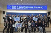 코리아타임뉴스 경기취재본부 | 안성시는 지난 19일, 제3기 안성시 시민참여위원회 정책 발표회를 개최하여 시민이 직접 발굴·제안한 정책에 대해 공유하고 우수 제안 정책을 선정하는 시간을 가졌다. 총 7개 분과로 구성된 안성시 시민참여위원회는 지난 1년 6개월간 정책 연구 활동을 통해 정책을 도출했으며, 각 분과에서 제안한 정책은 ▲Safety 안성, 시민이 안전한 도시 만들기(공공혁신분과) ▲안성시 평생학습도시에 따른 평생교육 강사 플랫폼 구축(교육특화분과) ▲안성시 한우산업 탄소중립 모니터링 시스템 구축(미래농업분과) ▲안성시민을 위한 태양광발전 5개년 계획(생태도시분과) ▲전통 문화 예술인들을 위한 창작공간 확보(문화도시분과) ▲안성, 사랑 흔들바위 관광지 조성(문화도시분과) ▲더불어 이동하는 자유로운 안성(생활복지분과) ▲안성시 기업지도와 멘토시스템 구축(산업진흥분과) ▲지속 가능 관광 산업 개발(산업진흥분과) 등 9건이다. 분과별 제안에 대한 우수 정책 선정은 사전 시민공감도 조사 점수 및 현장심사 점수를 합산하여 진행했으며, 최우수는 문화도시분과, 우수는 교육특화·생태도시·생활복지분과, 장려는 공공혁신·미래농업·산