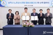 코리아타임뉴스 이아름 기자 | 삼척시는 노후 상수관망 정비사업의 효율적인 추진을 위해 12월 22일 오전 11시, 삼척시청 소회의실에서 한국수자원공사(K-water) 한강유역본부(본부장 이선익)와 위수탁 협약을 체결했다. 양 기관은 이번 협약을 통해 노후 상수관로를 단계적으로 교체하고, 체계적인 유량 감시 시스템을 구축할 계획이다. 이를 통해 유수율을 향상시키고 수돗물 생산 비용을 절감하는 한편, 녹물 발생과 누수 문제를 근본적으로 개선해 보다 안정적인 수돗물 공급 체계를 마련할 것으로 기대된다. 박상수 삼척시장은 “물관리 전문기관과의 협력을 통해 사업의 완성도를 높이는 중요한 계기가 될 것”이라며, “총사업비 303억 원이 투입되는 대규모 사업인 만큼 철저한 현장 관리와 체계적인 정비를 통해 시민들이 안심하고 마실 수 있는 건강한 물 환경 조성에 최선을 다하겠다”고 전했다.