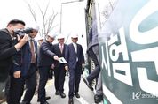 코리아타임뉴스 김택호 기자 | 조원휘 대전시의회 의장과 송인석 산업건설위원장이 1일 대전 유성구 도안동 호수공원 일원에서 국내 최초로 실시된 3칸 굴절차량 도로 시험 운행 현장을 점검했다. 한편, 대전시가 전국 최초 도입하는 3칸 굴절차량은 향후 6월까지 도안동로 중앙버스전용차로 일부 구간(갑천4블럭~용반네거리)에서 시험 운행 후 전용차로 및 차고지 등 기반 시설 구축 일정에 맞춰 올해 10월까지 단계적으로 개통할 계획이다.