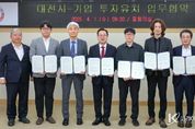 코리아타임뉴스 대전취재본부 | 대전시는 1일 시청 중회의실에서 국내 유망기업 5개 사와 총 550억 원 규모의 신규 투자와 대전 이전에 대한 업무협약(MOU)을 체결했다. 이를 통해 250여 개의 일자리가 창출되는 등 지역경제 활성화에 기여할 것으로 전망된다. 이날 협약식에는 이장우 대전시장과 정태희 대전상공회의소 회장을 비롯해 정태영 ㈜동명씨앤에스 최고기술책임자(CTO), 황보제민 ㈜라이온로보틱스 대표, 이강헌 알엑스㈜ 대표, 선강훈 에이치앤파워㈜ 경영관리본부장, 류석진 유저스㈜ 대표가 참석했다. 협약에는 기업의 대전 이전 및 신설 투자와 함께 원활한 투자 진행을 위한 대전시의 행정적ㆍ재정적 지원과 신규고용 창출 및 지역경제 발전을 위한 공동 협력 방안이 담겼다. 서구 평촌 산업단지에는 첨단 기술과 나노코팅 기술을 결합한 경기장 관람석 의자 제조 기업 ㈜동명씨앤에스가 투자해 제품의 양산 능력을 확대할 예정이다. 유성구 탑립ㆍ전민지구에는 국방ㆍ재난ㆍ산업안전 분야 사족보행 로봇 제조 기업 ㈜라이온로보틱스와 인공지능(AI) 기반 소형모듈원자로(SMR) 디지털화 기술을 개발하는 알엑스㈜(대표