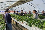 코리아타임뉴스 오영주 기자 | 충남도 농업기술원은 11일 논산시 현장접목연구 실증농가에서 딸기 농가의 소득증대를 위한 ‘딸기 조기정식 후 관부냉방 기술 현장평가회’를 개최했다. 현장평가회에서는 딸기 재배농가, 연구 및 지도기관 관계자 등 200여 명이 참석한 가운데, 여름철 고온기에도 안정적으로 꽃눈분화를 유도할 수 있는 ‘조기정식 후 관부냉방 기술’의 적용성과 현장사례를 공유했다. 딸기의 과실은 일반적으로 9월 중순 꽃눈이 분화된 뒤 개화해 12월부터 본격 수확되지만, 최근 육묘하우스 시설 개선과 양분관리 기술 발달로 수확시기가 점차 앞당겨지고 있다. 조기수확이 늘어나는 이유는 출하 시기가 빠를수록 판매가격이 높아져 농가소득 증대 효과가 크기 때문이다. 그러나 꽃눈분화를 촉진하기 위해서는 하우스 온도를 낮춰야 하는데, 여름철 고온기에는 현실적으로 냉방 효율이 낮아 실용성이 떨어진다. 이를 해결하기 위해 도 농업기술원 딸기연구소는 생장점이 위치한 관부(줄기와 뿌리의 연결 부위)만을 선택적으로 냉각하는 ‘조기정식 후 관부냉방 기술’을 개발했다. 이 기술은 △8월 초 본포에 묘를 정식한