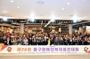 코리아타임뉴스 윤경수 기자 | 울산지체장애인협회 중구지회가 11월 20일 오전 10시 30분 울산시티컨벤션 안다미로홀에서 제26회 장애인복지증진대회를 개최했다. 이번 행사는 장애에 대한 인식을 개선하고 장애인과 비장애인 사이의 소통을 증진하기 위해 마련됐다. 이날 행사에는 김영길 중구청장과 박경흠 중구의회 의장, 이길우 울산시지체장애인협회장, 정진수 울산시장애인총연합회장, 울산지체장애인 중구지회 관계자, 장애인 및 가족, 자원봉사자 등 350여 명이 함께했다. 이번 행사는 울산중구자원봉사센터 봉사단의 우쿨렐레와 바이올린 연주, 숟가락 난타 공연으로 막을 열었다. 1부 기념식은 △장애인 복지 증진 유공자 표창 및 감사패 수여 △개회사 △격려사 △축사 △기념촬영 순으로 진행됐다. 2부 문화 행사 순서에서는 초대 가수 김송, 배채연의 축하공연과 참가자 장기자랑 등이 펼쳐졌다. 김영길 중구청장은 “장애인 권익 신장과 복지 증진을 위해 힘써주신 모든 분들에게 감사드린다”며 “앞으로도 장애인과 비장애인이 서로 존중하며 더불어 사는 행복한 사회를 만들기 위해 노력하겠다”고 밝혔다.