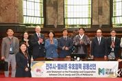 코리아타임뉴스 전북취재본부 | 전주시와 호주의 대표도시인 멜버른시가 상호 발전을 응원하는 동반자가 되기로 했다. 우범기 전주시장이 이끄는 전주시 대표단은 현지시간으로 지난 10일 호주 멜버른 시청을 방문해 케빈 로웨이 멜버른 시의원과 오진관 주 멜버른 대한민국 총영사, 마크 코크레인 멜버른 국제협력실 국장, 멜버른 지역 언론사 등이 참석한 가운데 양 도시간 교류를 더욱 발전시키기로 뜻을 모았다. 특히 양 도시는 이 자리에서 우호적 국제관계를 맺는 공동선언에 나섰다. 이날 서명한 협력 체결서에는 △문화예술교류 활성화 △문화산업 및 관광·도시디자인 협력 △지속가능한 문화경제 발전 △공공·민간협력 네트워크 구축 등의 내용이 담겨 있다. 전주시와의 국제교류를 약속한 멜버른시는 호주 빅토리아주 기초자치단체 중 핵심이 되는 도시로, 호주 내에서도 가장 살고 싶은 도시로 선정된 바 있다. 우 시장을 비롯한 전주시 대표단과 멜번시 관계자들은 우호 협력 체결 이후 문화예술과 관광, 스포츠, 경제, 도시디자인, 교육 등 다양한 분야의 교류 확대 방안을 논의하기도 했다. 전주시 대표단은 멜버