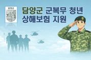 코리아타임뉴스 전남취재본부 | 담양군이 군 복무 중인 지역 청년들의 복지 향상과 사회안전망 강화를 위해 군 복무 청년 상해 단체보험 지원사업을 시행한다. 보험기간은 2026년 3월 9일부터 2027년 3월 8일까지이며, 지원 대상은 담양군에 주민등록을 둔 현역 군 복무 청년이다. 다만 직업군인, 사회복무요원, 산업기능요원 등은 제외된다. 해당 보험은 별도의 신청 절차 없이 군 입대 시 자동 가입되고 전역 시 자동 해지되는 방식으로 운영된다. 군 복무 중 상해·질병·사망·입원·수술 등 사고나 질병 발생 시 15종의 보장을 받을 수 있으며, 다른 보험과 관계없이 중복 보상도 가능하다. 군 관계자는 “군 복무 청년 상해 단체보험 지원을 통해 청년들의 경제적 부담을 덜고 안심하고 복무할 수 있는 여건이 조성되길 바란다”며 “앞으로도 청년의 생활 안정과 복지 향상을 위한 정책을 지속적으로 추진해 청년이 머물고 성장할 수 있는 담양을 만들어 나가겠다”라고 말했다.