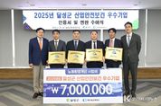 코리아타임뉴스 대구취재본부 | 대구 달성군이 안전한 일터 조성에 모범적인 우수 기업을 선정해 인센티브를 지원하는 등 산업재해 예방에 총력을 다하고 있다. 달성군은 대구상공회의소와 공동으로 지난 26일 ‘2025년 달성군 산업안전보건 우수기업 인증서 및 현판 수여식’을 개최하고, 안전한 일터 만들기에 솔선수범한 관내 4개 기업에 인증서와 현판을 전달했다. 올해 우수기업으로 선정된 곳은 ㈜대지메카트로닉스, 미래첨단소재(주), ㈜비엠아이, 일성산업 등 총 4곳이다. 이들 기업에는 인증과 함께, 근로환경 개선을 위한 사업비가 최대 700만 원까지 지원된다. 해당 지원금은 근로시설 및 안전장비 개선 등에 활용될 수 있다. ‘산업안전보건 우수기업 인증사업’은 달성군과 대구상공회의소가 지난 2023년부터 공동 추진해온 사업으로, 산업재해 예방을 위한 민관 협력 모델로 주목받고 있다. 양 기관은 안전하고 건강한 작업환경을 구축하는 기업을 매년 선정해 인증하고, 인센티브를 제공해 오고 있다. 최재훈 달성군수는 “경제가 침체돼 어려운 이때에도 안전한 일터 만들기에 앞장서 온 기업인 여러분의 노고에 감사드린다”며 “앞