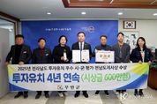 코리아타임뉴스 노승선 기자 | 전남 무안군은 2025년 일자리경제 한마당 행사에서 투자유치 분야 우수 시군으로 선정되어 도지사 표창을 수상했다고 24일 밝혔다. 이로써, 무안군은 4년 연속 입상이라는 성과를 거두며 투자유치 분야에서 꾸준한 경쟁력을 보여주고 있다. 군은 올해 목포무안신안축협과 50억 규모의 투자협약(MOU)을 체결해 15명의 신규 일자리를 창출했으며, 농업회사법인 단물의 38억 투자 실현으로 지역경제에 활력을 불어넣었다. 또한 설명회와 언론보도 등 20건의 투자유치 여건 조성 활동을 추진하고, 도리포카이파 등 9개 기업을 직접 방문해 애로사항을 청취하는 등 기업 친화적 환경을 조성했다. 특히 2,400억 규모의 ‘도리포 리조트 조성사업’은 무안군 투자유치의 대표적 성과로 꼽힌다. 호텔과 풀빌라, 연회장 등 대규모 관광 인프라를 갖춘 이 사업은 2026년 착공을 목표로 본격 추진 중이며, 향후 지역 관광산업과 고용 창출에 크게 기여할 것으로 기대된다. 김산 군수는“4년 연속 투자유치 평가에서 입상한 것은 군민과 기업, 행정이 함께 노력한 결과”라며 “앞으로도 적극적인 투자유치 활동을