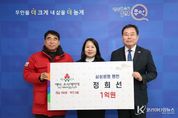 코리아타임뉴스 노승선 기자 | 전남 무안군은 지난 26일 삼성생명 정희선 명인의 무안군 제6호(전남 166호) 아너소사이어티 회원 가입식을 개최했다. 이날 가입식에는 김산 군수를 비롯해 전남사회복지공동모금회 허영호 회장 및 관계자 등이 참석한 가운데 인증패를 전달하며 축하의 뜻을 전했으며, 정희선 삼성생명 명인이 기부한 성금은 전남사회복지공동모금회를 통해 관내 취약계층 및 사회복지시설 지원 등으로 사용될 예정이다. 정희선 삼성생명 명인은 “의미있는 따뜻한 나눔활동에 함께 참여할 수 있어서 기쁘다”며, “그동안 고객과의 신뢰를 바탕으로 성장한 만큼, 앞으로도 지역사회와 상생하며 따뜻한 나눔을 지속적으로 실천해 나가겠다”고 소감을 밝혔다. 김산 군수는 “지역사회를 위한 꾸준한 나눔활동으로 선한 영향력을 펼쳐 주신 정희선 삼성생명 명인께 깊이 감사드린다”며, “기탁해 주신 소중한 성금은 도움이 필요한 이웃들에게 희망과 용기가 될 수 있도록 뜻깊게 전달하겠다”고 밝혔다. 한편, 아너 소사이어티(Honor Society)는 사회복지공동모금회가 운영하는 1억 원 이상을 기부했거나 5년 이내 기부 약정한 개인