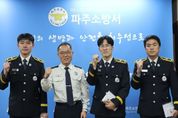 코리아타임뉴스 김태훈 기자 | 파주소방서는 오는 6일 파주소방서 본서 서장실에서 근속승진 대상자 3명에 대한 계급장 수여식을 열었다. 이번 수여식은 소방위로 승진한 박삼진, 정찬희, 이재훈 소방공무원에게 계급장을 전달하며 그간 노고를 치하하고 앞으로의 책임을 강조하기 위한 자리였다. 수여식에는 해당 승진자 외에도 서장, 각 과장, 동료 소방공무원들이 참석해 축하와 격려를 전했다. 특히 승진자들이 그동안 현장에서 이룬 업무 성과와 전문성, 동료애를 소개하며 박수로 격려하는 시간이 마련됐다. 승진자들은 화재 진압·구조·구급 등 최일선 현장에서 시민의 생명과 안전을 지키는 임무를 수행하게 된다. 김명찬 파주소방서장은 “오늘 승진은 단지 직책이 바뀌는 것이 아니라 그동안의 헌신과 전문성이 인정받은 결과다”며 “시민의 안전을 위해 묵묵히 소임을 다해온 여러분께 감사드리며, 책임과 역할이 한층 더 커진 만큼 소방대원으로서의 사명감과 자부심을 갖고 현장에서 최선을 다해주기 바란다”고 당부했다.