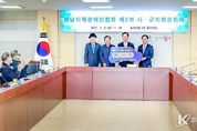 코리아타임뉴스 윤경수 기자 | 함안군은 지난 6일 함안지체장애인 후원회가 함안군청 별관 회의실에서 (사)경남지체장애인연합회 함안군지회(회장 이성형)에 차량 구입을 위한 후원금 2000만 원을 전달했다고 밝혔다. 이날 전달식에는 조근제 함안군수를 비롯해 함안지체장애인 후원회 관계자와 함안군지체장애인 지회 임직원 등이 참석해 나눔의 의미를 더했다. 이번 후원금은 지체장애인지회 신규 차량 구입에 사용될 예정이다. 후원회장은 장애인의 사회 참여를 돕고 삶의 질을 높이기 위해 회원들의 뜻을 모아 이번 기탁을 결정했다. 함안지체장애인 후원회 나희욱 회장은 “우리 이웃인 장애인들이 더 넓은 세상과 소통하는 데 작은 보탬이 되길 바란다”며 “앞으로도 지체장애인들의 권익 향상과 복지 사각지대 해소를 위해 지속적인 관심을 기울이겠다”고 전했다. 이에 이성형 지회장은 “기탁해 주신 소중한 후원금으로 마련될 새 차량으로 지역 내 장애인분들이 다양한 사회 활동에 참여할 수 있도록 지회 차원에서도 최선을 다하겠다”고 말했다. 조근제 함안군수는 “어려운 시기에도 불구하고 지역 장애인들을 위해 큰 결