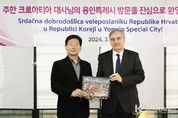 코리아타임뉴스 이아름 기자 | 이상일 용인특례시장은 19일 오후 기흥구 백남준아트센터에서 열린 국제기획전 ‘불연속의 접점들’개막식에 참석했다. 이 시장은 개막식에 앞서 다미르 쿠센 주한 크로아티아 대사와 30여분 간 환담을 하며 용인특례시와 크로아티아의 도시 간 교류 협력 문제에 대해 의견을 교환했다. 이번 전시는 백남준아트센터와 크로아티아의 수도 자그레브에 위치한 ‘자그레브 현대미술관’이 공동 기획한 국제 전시로, 고(故) 백남준 작가의 예술 정신과 맥을 같이하는 크로아티아 미디어아트 작품들을 소개하는 등 양국 간 문화예술 교류를 강화하기 위해 마련됐다. 전시는 19일부터 6월 14일까지 백남준아트센터에서 진행되며, 크로아티아 작가 15명이 참여해 영상, 설치, 조각 등 다양한 미디어아트 작품 26점을 선보인다. 개막식에는 이상일 시장과 다미르 쿠센 주한 크로아티아 대사, 베스나 메슈트리치 자그레브 현대미술관장, 허남진 경기문화재단 이사장과 유정주 대표이사, 도의원, 문화예술계 인사, 시민 등 250여 명이 참석했다. 이상일 시장은 “백남준아트센터를 찾은 모든 분들의 용인시 방문을 환
