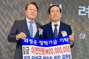 코리아타임뉴스 노승선 기자 | 재단법인 의성군인재육성재단(이사장 김주수 의성군수)은 지난 15일 재경의성군향우회 유한철 회장(서울승합 대표)이 지역 인재 육성을 위해 사용해 달라며 장학금 2천만 원을 의성군에 전달했다고 밝혔다. 재경의성군향우회 회장이자 안사면 명예면장을 맡고 있는 유한철 회장은 2013년부터 현재까지 장학금 9천만 원을 비롯해 불우이웃돕기 성금 1천 5백만 원, 고향사랑기부금 5백만 원을 기부하며 꾸준한 나눔을 실천해 오고 있다. 이와 함께 코로나19 이후 5년 만에 열린 제66회 의성군민체육대회에 1천만 원 상당의 물품을 지원했으며, 지난 3월 대형 산불로 피해를 입은 의성군을 돕기 위해 산불 피해 지원 성금 1억 5천만 원을 기탁하는 등 각종 지역 현안 해결에도 적극 동참하며 각별한 고향 사랑을 보여주고 있다. 유한철 회장은 “지역 학생들이 다양한 재능을 발견하고 학업에 전념할 수 있는 환경이 조성되기를 바란다”고 전했다. 김주수 의성군수는 “고향 발전을 위한 지속적인 관심과 따뜻한 나눔에 깊이 감사드린다”며 “기탁해 주신 장학금은 의성의 학생들이 미래를 이끌 훌륭한 인재로 성