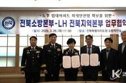 코리아타임뉴스 김태훈 기자 | 전북특별자치도소방본부(본부장 이오숙)는 26일 도청 17층 소방작전실에서 LH 전북지역본부와 노후 임대아파트 화재안전망 확보를 위한 업무협약을 체결했다고 밝혔다. 이번 협약은 노후 임대아파트에 거주하는 아동, 노인, 장애인 등 화재안전취약계층의 주거 안전을 강화하고, 화재 발생시 보다 신속한 대피가 가능하도록 하기 위해 마련됐다. 이날 협약식에는 전북소방본부에서 이오숙 소방본부장과 119대응과장, 예방안전과장 등이 참석했으며, LH 전북지역본부에서는 송영환 전북지역본부장과 주거복지사업처장, 임대자산관리팀장 등이 함께했다. 협약에 따라 전북소방본부는 LH가 보유한 노후 임대아파트를 대상으로 화재감지기 보급사업을 추진하고, 영구임대아파트 간이 스프링클러 설치 공사에 대한 행정·기술 지원을 맡는다. 또한 LH 임직원을 대상으로 한 안전체험 교육도 지원할 계획이다. LH 전북지역본부는 영구임대아파트를 대상으로 간이 스프링클러 설치사업을 추진하고, 노후 임대아파트 화재감지기 보급사업이 원활히 진행될 수 있도록 입주민 안내 등 현장 지원에 나선다. 아울러 화재피해를 입은 취약계층