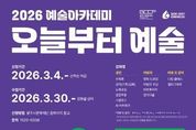 코리아타임뉴스 이아름 기자 | (재)광주시문화재단은 광주시민의 문화향유 기회 확대와 예술 감수성 향상을 위해 2026년 예술아카데미 '오늘부터 예술' 수강생을 모집한다. 2026 예술아카데미는 성인 · 어린이 · 시니어 등 다양한 연령층의 수요를 반영 전통예술과 생활예술 디지털 창작을 아우르는 프로그램으로 구성했다. 특히 어린이 강좌는 가족 단위 참여 확대를 위해 ‘따로, 또 같이’ 운영 방식을 강화하여, 아이와 보호자가 함께 방문하여 각자 다른 공간에서 개별 수업을 수강할 수 있도록 운영한다.(※ 보호자 강좌는 수강료 없이 무료로 운영) 성인 강좌는 △수묵화(동양을 담아내는 수묵화) △성악(천상의 목소리, 성악) △궁중무용(전통의 아름다움 궁중무용) △노래교실(함께 부르는 노래교실) △스윙댄스(가볍게 한 스탭, 스윙댄스) △AI(AI 아트워크) 등으로 운영될 예정이다. 어린이 강좌는 △어린이 코딩(우리는 코딩예술가) △창의미술(미술로 마음껏) △명화 드로잉(작은 화가의 명화드로잉) △비트메이커 등으로 운영될 예정이다. 광주시문화재단 오세영 대표는 “예술아카데미 '오늘부터 예술'은 시민