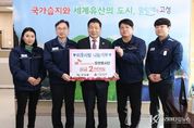 코리아타임뉴스 기동취재팀 | 이천시는 12월 16일 한국공인중개사협회 경기도남부회 이천시지회가 연말을 맞아 지역의 어려운 이웃을 돕기 위한 성금 115만원을 이천시 행복한 동행에 기탁했다고 밝혔다. 이번 성금은 약 450명의 이천시지회 회원들이 자발적으로 정성을 모아 마련한 것으로, 윤태선 지회장을 비롯한 임원 2명이 이천시청을 방문해 전달했다. 이천시지회는 매년 연탄 나눔 봉사 등 다양한 나눔 활동을 꾸준히 이어오고 있으며, 올해는 이를 성금 기탁 방식으로 전환해 겨울철 취약계층에게 보다 실질적인 복지 지원이 이뤄질수 있도록 했다. 윤태선 지회장은 “작은 정성이지만 도움이 필요한 이웃들에게 따뜻한 겨울을 보내는 데 보탬이 되길 바란다”며 “앞으로도 지역사회와 함께하는 나눔 활동을 지속적으로 이어가겠다”고 말했다. 기탁된 성금은 ‘이천시 행복한 통행’을 통해 저소득층 및 복지사각지대 가구를 지원하는데 사용될 예정이다. 김경희 이천시장은 “연말을 맞아 지역사회를 위한 따뜻한 나눔을 실천해주신 지회 회원 여러분께 감사드린다”며, “전달된 성금은 도움이 필요한 가정에 소중히 전달하겠다”고 감