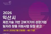 코리아타임뉴스 전북취재본부 | 익산시가 지역 경제의 허리인 중소·벤처기업의 기술력을 높이고, 양질의 일자리를 늘리기 위해 '성장 기업 지원 사업'에 본격적으로 나선다. 시는 지역의 유망한 기업들이 스스로 성장할 수 있는 힘을 기르고, 그 결실이 신규 고용으로 이어지는 선순환 구조를 만들기 위해 참여 기업을 모집한다고 27일 밝혔다. 단순한 일자리가 아니라 고도화한 기술력과 지식을 바탕으로 더 많은 이익을 만들어내는 양질의 일자리를 확산하는 것이 목표다. 이번 사업의 지원 대상은 익산에 본사나 공장을 둔 중소·벤처기업 8개사 내외다. 공고일 기준 익산 소재 기업 중 사업 기간 내에 최소 1명 이상의 새로운 직원을 뽑고 유지할 수 있는 곳이라면 신청할 수 있다. 특히 물건을 만드는 '제조업'이나 기술 바탕의 서비스업 등 혁신 기술을 가진 기업은 우대 혜택이 주어진다. 선정된 기업은 △기술 고도화 지원 △공정 개선 및 양산성 검증 △시험·분석 및 인증 지원 △기업 경쟁력 강화 프로그램에 필요한 비용을 기업당 1,800만 원까지 지원받을 수 있다. 지원을 희망하는 기업은 오는
