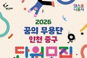 코리아타임뉴스 오영주 기자 | (재)인천중구문화재단(이사장 김정헌)은 2026 꿈의 무용단 ‘인천 중구’의 신규 단원을 모집한다고 4일 밝혔다. ‘꿈의 무용단’은 문화체육관광부가 주최하고 한국문화예술교육진흥원이 주관하는 꿈의 예술단 사업으로, 인천중구문화재단은 4년 차 거점기관으로서 현대무용 기반의 무용예술교육을 안정적으로 운영해 오고 있다. 모집 대상은 인천 지역 거주 또는 소재 학교 재학 중인 아동·청소년(8세~18세)이며, 모집 기간은 2월 26일부터 3월 18일까지다. 중구·동구 거주자(또는 관내 학교 재학생)는 선발 시 우대한다. 이번 2026 꿈의 무용단 ‘인천 중구’는 현대무용 기반 문화예술교육을 통해 아동·청소년의 표현력과 공동체 역량을 키우는 성장형 프로그램이다. 무엇보다 과정 중심의 교육을 통해 참여 경험의 가치를 높이고자 한다. 재단은 온라인 접수 후 오디션을 통해 단원을 최종 선발할 방침이다. 선발된 단원은 4월부터 11월까지 정기 교육과정과 정기 공연에 참여하게 된다. 교육은 기초 신체 훈련과 움직임 탐색, 즉흥 활동, 레퍼토리 창작 등 단계별 프로그램으로 운영될