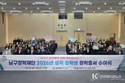 코리아타임뉴스 울산취재본부 | 울산 남구는 10일 남구청 대강당에서 2026년도 성적우수 장학생 장학증서 수여식을 개최했다. 이날 수여식에는 이사장인 서동욱 남구청장을 비롯한 장학재단 이사, 장학생과 학부모 등 50여 명이 참석해 자리를 빛냈다. 남구장학재단은 앞서 총 91명의 신청자 중 장학재단이사회 심의를 거쳐 대학생 43명을 최종 선발했으며, 이날 선발된 장학생들에게 장학증서를 수여했다. 장학금은 총 1억 7,200만 원 규모로, 대학생에게 1인 최대 400만 원이 지원된다. 특히 이날 수여식에서는 장학생들이 직접 준비한 감사 퍼포먼스가 진행돼 눈길을 끌었다. 장학생들은 재단과 가족을 향한 감사의 마음을 담아 ‘우리는 남구의 미래다’라는 메시지를 함께 외치며 자신들의 다짐과 성장 의지를 표현했다. 이와 함께 최우수 장학생의 진심 어린 소감도 이어졌다. 간호학과 서수민 학생은 “이번 장학금은 단순한 지원을 넘어, 스스로를 돌아보고 앞으로 나아갈 방향을 다시 다짐하는 계기가 됐다”며 “앞으로 환자를 돌보는 간호인으로서 성실히 성장하고, 받은 도움을 사회에 환