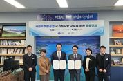 코리아타임뉴스 오영주 기자 | 남해군과 사천시가 남해안 균형발전과 미래 산업·관광 인프라 혁신을 위해 뜻을 모았다. 장충남 남해군수와 박동식 사천시장은 6일 남해군청에서 ‘사천우주항공선 국가철도망 구축’을 위한 공동 건의문을 채택하고, 국토교통부가 수립 중인 ‘제5차(2026~2035) 국가철도망 구축계획’ 에 해당 노선의 반영을 공식 요청했다. 남해군과 사천시는 기존 도로 기반 교통체계만으로는 증가하는 산업물동량과 관광수요를 감당하기 어렵다는 데 의견을 같이했다. 사천우주항공선이 신설될 경우, 우주항공청·국가산업단지·남해안 주요 관광지 등 핵심 거점의 접근성이 대폭 향상되고, 지역 공동체의 이동 편의 증진과 경제 활성화를 뒷받침해 남해안의 공간 구조 개편에 획기적인 역할을 할 것으로 기대된다. 장충남 남해군수는 “해저터널 개통과 대규모 관광 인프라 확충 등 지역의 미래 준비가 가속화되고 있는 가운데, 남해군은 대전~남해선 철도 노선의 국가계획 반영을 위해서도 힘쓰고 있다”며, “남해는 남부내륙을 관통하는 대전~남해선과 더불어 사천우주항공선이 연계될 때 비로소 지역의 관광, 경제, 산업이 모두 함