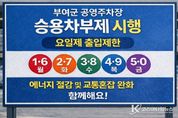 코리아타임뉴스 충남취재본부 | 부여군은 중동 정세 지속에 따른 자원안보위기에 대응하여 에너지 소비 절감과 지역 교통환경 개선을 위해 승용차부제를 시행한다고 밝혔다. 공공기관 승용차 5부제는 지난 3월 25일부터 시행됐으며, 4월 8일부터 위기경보 해제 시까지는 차량번호 끝자리를 기준으로 공영주차장은 5부제(요일별 출입을 제한), 공공기관은 2부제(홀·짝 운행)로 운영된다. 공공기관은 본청, 직속기관, 사업소, 읍·면이 해당하며, 공영주차장은 부여공영주차타워와 부여읍 공영주차장(부여성결교회 인근)이 해당한다. 부여군은 주민들의 자발적인 참여를 유도하기 위해 공영주차장 요금 감면 인센티브도 함께 추진한다. 승용차부제에 참여하는 주민과 사업자에게는 공영주차장 할인권(500원)을 차량당 2매씩 제공할 예정이다. 할인권은 읍면 행정복지센터를 통해 신청서 및 확약서를 제출한 때에만 지급되며, 선착순으로 배부된다. 부여군 관계자는 “승용차부제는 에너지 절약과 교통환경 개선을 동시에 달성할 수 있는 중요한 정책”이라며, “군민 여러분의 적극적인 참여와 협조를 부탁드린다.”라고 말했다.