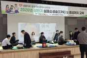 코리아타임뉴스 사회팀 | 군포산업진흥원은 지난 6일 컨벤션홀에서 군포시 산본보건지소의 '찾아가는 심폐소생술 교육'과 연계해 임직원을 대상으로 심폐소생술(CPR) 및 응급처치 교육을 실시했다. 이번 교육은 심폐소생술(CPR) 이론 및 실습을 비롯해 자동심장충격기(AED) 사용법, 응급처치 요령 등 실제 상황을 가정한 체험 중심 프로그램으로 진행됐다. 특히 2026년부터 체육시설 운영에 따라 다양한 연령층의 이용객이 증가하여 임직원의 응급상황 대응 역량을 강화하고 안전한 시설 환경을 조성하고자 이번 교육을 마련했다. 이번 상반기 교육은 임직원을 대상으로 우선 실시했으며 하반기에는 입주기업 및 체육시설 이용객 등으로 참여 대상을 확대해 운영할 계획이다. 유병직 원장은 "지역 보건소와의 협업을 통해 보다 전문적이고 체계적인 교육을 제공할 수 있었다"며 “앞으로도 실효성 있는 안전교육을 지속 확대해 안전한 근무환경과 이용환경 조성에 힘쓰겠다"고 밝혔다.