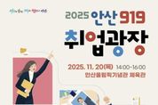 코리아타임뉴스 기동취재팀 | 안산시는 오는 20일 ‘2025년 11월 안산 919취업광장’을 안산올림픽기념관 체육관에서 개최한다고 5일 밝혔다. 이번 ‘안산 919취업광장’은 안산시일자리센터와 지역 일자리 유관기관이 협업해 진행하는 올해의 마지막 채용행사다. 시는 인력난을 겪고 있는 기업체에 우수 인력을 지원하고 취업을 희망하는 구직자에게는 일자리 기회를 제공하는 등 미스매칭 해소를 통한 만남의 장을 마련한다. 이날은 우수기업체 30여 개 사가 참여할 예정이다. 한편, 안산시는 지난 9월 경기도와 공동으로 ‘안산시 스마트허브 2040·경기도 5070 통합 일자리박람회’를 개최해 40개 기업 면접에 1,300여 명이 참여한 바 있다. 참가를 원하는 구직자는 박람회 당일 이력서 등 입사 지원 서류를 지참해 방문하면 ▲1:1 채용면접 ▲1:1 이력서 컨설팅 등 현장에서 희망하는 기업에 지원하고 면접에 참여할 수 있다. 일자리 기관별 취업 상담 및 재무 상담도 받을 수 있다. 참여 기업 정보와 박람회 일정 등 자세한 내용은 안산시청 누리집 ‘안산시 주요서비스-취업(일자리)정보’에서 확인하거나,
