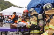 코리아타임뉴스 김태훈 기자 | 전라남도소방본부는 12일 여수 소노캄 호텔 일원에서 대규모 지진 상황을 가정한 ‘2025년 국가단위 긴급구조종합훈련’을 진행, 65개 유관기관과의 현장 중심 협업체계를 점검했다. 소방청과 전남도소방본부는 이날 규모 7.5의 지진으로 건물과 거북선대교가 붕괴되고, 선박 화재와 산불 등 동시다발적 화재와 폭발이 발생하는 복합 재난 상황을 가정해 실전과 같은 훈련을 펼쳤다. 소방청이 주관하고 전남도소방본부가 주최한 이번 훈련은 지진 등 대형 복합재난 발생 시 유관기관 간 긴급구조 대응 역량을 강화하고, 현장 중심의 통합지휘체계 확립을 위한 국가 차원의 종합훈련이다. 행정안전부, 산림청, 국방부를 비롯해 전국 10개 시·도 소방본부 등 총 65개 기관에서 1천500여 명이 참여했으며, 헬기, 대용량방사시스템 등 200여 대의 각종 장비도 투입돼 대규모 협업 대응 체계를 점검했다. 훈련 상황은 여수 오동도 해상 인근에서 발생한 규모 7.5의 강진으로 여수 일대에 광범위한 피해가 발생하고, 이에 따라 총 623명이 넘는 사상자가 발생한 것으로 설정됐다. 특히 구조·구