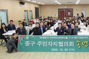 코리아타임뉴스 오영주 기자 | 인천 중구의회는 지난 29일 율목동 커뮤니티센터에서 열린 '2025년 중구 주민자치협의회 송년회'에 참석했다. 이날 행사에는 이종호 의장, 손은비 운영총무위원장, 윤효화 예산결산특별위원장이 참석해 한 해 동안 지역사회 발전을 위해 헌신한 주민자치회장단과 사무국장 등 각 동 주민자치회 관계자들에게 감사와 격려의 뜻을 전했다. 이종호 의장은 "올 한 해 주민 가까이에서 지역 현안 해결과 주민자치 활성화를 위해 애써주신 모든 분께 깊이 감사드린다"며 "중구의회도 주민자치회가 지역 공동체의 중심 역할을 할 수 있도록 제도적 지원을 아끼지 않겠다"고 밝혔다. 한편, 중구의회는 앞으로도 주민자치협의회와 협력해 주민 중심의 지역 자치 활성화를 위해 노력한다는 계획이다.