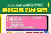 코리아타임뉴스 경남취재본부 | 고성군은 2026년 학력인정 문해교육 프로그램의 원활한 운영을 위하여 강사 7명을 공개 모집한다고 밝혔다. 모집 분야는 초등학력인정 문해교육 강사 1명과 중학학력인정 문해교육 과목별 강사 6명 등 총 7명이며, 활동 기간은 2026년 3월부터 12월까지다. 모집 기간은 1월 9일부터 16일까지이며, 지원자는 해당 기간 내 방문 접수를 통해 신청해야 한다. 단, 우편 및 팩스 접수는 불가하다. 특히 2026년에는 고성군에서 처음으로 중학학력인정 문해교육 과정을 신설하여 운영할 예정으로 지역 내 성인 학습자들에게 더욱 폭넓은 학력 취득 기회를 제공할 것으로 기대된다. 강사 채용 관련 자세한 사항은 고성군청 홈페이지나 고성군밴드에서 확인할 수 있다. 이소영 교육청소년과장은 “학력인정 문해교육의 내실 있는 운영을 위해 역량 있는 강사분들의 적극적인 관심과 지원을 바란다”라며, “특히 올해 신규 운영되는 중학학력인정 과정이 새로운 도전과 성장의 기회가 될 수 있기를 기대한다”라고 전했다. 고성군은 성인문해교육 프로그램을 통해 배움의 끈을 놓