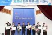 코리아타임뉴스 김태훈 기자 | 전주시가 강한 경제도시 구현과 전주의 대변혁을 위해 힘쓴 시민들에 대한 시상을 끝으로 2025년 한해를 따뜻하게 마무리했다. 시는 31일 시청 강당에서 우범기 전주시장을 비롯한 공무원과 유공시민 등 300여 명이 참석한 가운데 ‘2025년 전주시 유공시민 시상식’을 개최했다. 아이돌 그룹 ‘멋진 녀석들’의 축하공연으로 문을 연 이날 행사에서는 지난 1년 동안 전주시의 발전을 위해 공헌한 전주시민과 공무원에 대한 시상이 이뤄졌다. 영광의 수상자는 △드론축구 활성화 유공자 △지방자치 활성화 유공자 △지역경제 및 복지 활성화 모범유공자 △감사수범 유공기관 및 유공시민 등 총 29명이다. 또한 이날 시상식에서는 복지·경제·문화 등 다양한 분야에서 적극 행정을 실천하고 창의적 노력을 통해 우수한 성과를 내는 등 열정적인 업무처리로 시정 발전에 기여한 우수 공무원에 대한 표창 수여식도 함께 진행됐다. 우범기 전주시장은 이날 “2025년 한 해 동안 전주 발전을 위해 여러 곳에서 애써주신 모든 시민과 직원들의 노고에 깊은 감사를 드린다”면서 “병오년 새해에도 시민들의