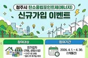 코리아타임뉴스 충북취재본부 | 청주시는 지구의 날(4.22.)을 기념하고자 일상 속 탄소중립 실천 문화를 확산하기 위해 4월 한 달간 ‘탄소중립포인트제(에너지)’ 신규 가입 이벤트를 추진한다고 1일 밝혔다. 탄소중립포인트제(에너지)는 가정과 상업시설에서 전기, 수도, 도시가스 사용량을 절감할 경우 감축률에 따라 인센티브를 지급하는 온실가스 감축 실천 제도다. 인센티브는 감축률에 따라 가정은 연간 최대 10만원, 상업시설은 최대 40만원까지 받을 수 있다. 이번 이벤트는 4월 1일부터 30일까지 진행되며, 기간 내 신규 가입한 청주시민 중 200명을 추첨해 1만원 상당의 모바일 상품권을 제공할 예정이다. 참여를 희망하는 시민은 탄소중립포인트제(에너지) 누리집에서 가입하거나, 가까운 읍·면·동 행정복지센터 또는 청주시청 기후대기과를 방문해 신청하면 된다. 시 관계자는 “탄소중립 청주 실현을 위해서는 시민들의 자발적인 참여가 무엇보다 중요하다”며 “에너지 절약으로 온실가스를 줄이고 인센티브와 경품 혜택도 받을 수 있는 이번 이벤트에 많은 관심과 참여를 부탁드린다”고 말했다.