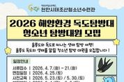 코리아타임뉴스 김택호 기자 | 천안시청소년재단 산하 천안시태조산청소년수련관은 지역 청소년을 대상으로 ‘2026 해양환경 독도탐방대’ 참가자를 모집한다고 7일 밝혔다. 이번 프로그램은 청소년들이 울릉도와 독도의 자연환경을 직접 체험하며 해양 생태계에 대한 이해를 높이고 영토의 소중함을 인식할 수 있도록 기획됐다. 모집 대상은 천안시에 거주하거나 관내 학교에 재학 중인 2008~2013년생 청소년 12명이다. 신청 기간은 7일부터 오는 21일까지이며, 참가를 희망하는 청소년은 네이버 폼을 통해 접수하면 된다. 탐방대는 서류 접수와 면접, 사전교육을 거쳐 선발되며, 울릉도·독도 현장 탐방은 오는 6월 4일부터 6일까지 2박 3일간 실시된다. 자세한 사항은 천안시태조산청소년수련관(041-566-0179)으로 문의하면 된다. 김응일 천안시청소년재단 대표이사 직무대행은 “청소년들이 우리 영토에 대한 이해를 높이고 올바른 가치관을 형성하는 계기가 되길 바란다”고 말했다.