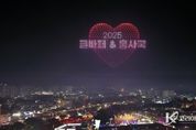 코리아타임뉴스 충남취재본부 | 홍성군은 지난 2일까지 나흘간 열린 2025 홍성글로벌바비큐페스티벌에 드론쇼를 도입하여 축제의 새로운 장을 열었다. 군에 따르면 올해 새롭게 도입한 드론라이트쇼가 2025 홍성글로벌바비큐페스티벌과 홍성사랑 국화축제 기간 중 2일간, 메인 공연 무대의 피날레를 장식하며 대 성황리에 막을 내렸다 이번 드론라이트쇼는 ‘2025~2026 충남 홍성 방문의 해’를 기념해 마련된 특별 공연 프로그램이다. 홍주읍성 홍화문 상공을 배경으로 총 2,000대의 드론이 투입된 이번 드론라이트쇼는 첨단 기술이 구현한 화려한 영상 연출로 관람객들의 뜨거운 환호를 이끌어냈으며, 홍성군 축제의 품격과 매력을 한층 끌어올렸다는 평가다. 특히, 공연을 보기 위해 축제장을 찾은 지역 주민들과 국내외 방문객들이 발디딜 틈 없이 주무대 광장을 가득 채우며, 드론공연이 시작한 오후 7시 순간 피크타임 방문객 4만 5천명을 기록하고 축제의 브랜드 가치 제고와 흥행에 큰 역할을 했다. 공연의 시작을 알린 초대형 하트 형상 연출에서는 방문객들의 탄성과 박수가 터져 나왔으며, 홍성한우·한돈의 우수한 품질과 맛을