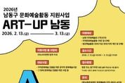 코리아타임뉴스 이아름 기자 | 인천시 남동구 남동문화재단은 지역 예술인의 안정적인 창작 활동 지원 및 지속 가능한 문화예술 기반 조성을 위해 2026년 남동구 문화예술활동 지원사업인 ‘ART-UP 남동’ 공모를 진행한다고 19일 밝혔다. 지원 대상은 ▲남동구문화예술회 ▲지역문화예술활동 개인 및 단체 ▲청년예술활동 개인 및 단체다. 지원 분야는 ▲발간·전시(문화예술인 및 예술단체의 문학발간, 미술품 전시 등) ▲공연(전문예술가들의 무용, 노래, 국악, 연극 등) ▲문화예술행사(예술인단체나 문화사업단체의 문화예술사업 및 행사·공연 등) 등으로 사업의 규모와 분야를 고려해 차등 지원된다. 올해는 ‘ART-UP 남동’이라는 사업명으로, 기존 지원금의 30% 이상 필수 편성에서 ‘지원금의 10% 이상 필수 편성’으로 자부담 비율을 낮춰 지역 예술 활동의 경제적 부담을 완화했다. 사업은 3월 13일까지 공고되며, 방문 또는 등기우편을 통해 신청할 수 있다. 신청 자격은 남동구에 주소를 두고 지역 안에서 활동하는 예술인과 문화예술단체로, 개인은 1년 이상, 단체는 지원 분야에 따라 1년에서 2년 이