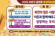 코리아타임뉴스 김택호 기자 | 천안시는 이달 10일부터 다음 달 25일까지 ‘2025년 하반기 읍면동평생학습센터 인문학 특강’을 운영한다고 3일 밝혔다. 시는 지역 주민들의 삶 가까이에서 평생학습 기회를 제공하고자 광덕·북면·입장면에서 읍면동 평생학습센터를 운영하고 있다. 하반기 프로그램은 전문 강사를 초빙하여 지역별 특성에 맞춘 ‘마을 학습공동체와 인문학 특강’으로 진행될 예정이다. 특강은 ▲광덕면 ‘내가 살고 싶은 광덕, 내 손으로 가꾸는 행복’, 몸과 마음의 동행: ‘나이 듦에 대한 솔직하고 유쾌한 인문학’▲북면 ‘북면의 힘은 사람! 이웃과 함께 배우고 성장하는 우리’ ▲입장면 ‘마을을 바꾸는 힘, 사람에게 있습니다! 함께 성장하는 지혜’, ‘마음을 잇는 갈등 조정 기술’로 구성됐다. 특강 신청은 평생학습센터 방문 또는 천안시 통합예약시스템에서 하면 된다. 자세한 사항은 천안시 평생학습포털 누리집 또는 두정평생학습관으로 문의하면 된다. 홍승종 교육청소년과장은 “각 지역의 특성을 반영한 전문가의 맞춤형 프로그램을 통해 지역 공동체 발전에 기여하고, 지역민들의 행복도를