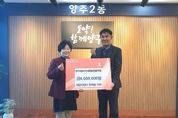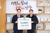코리아타임뉴스 윤광희 기자 | 양주시가 31일 ㈜스포플렉스로부터 연말을 맞아 이웃돕기 성금 100만 원을 기탁받았다. 이날 기탁식에는 남병태 대표가 참석했으며, 기탁된 성금은 경기 사회복지공동모금회를 통해 양주시 취약계층 지원에 사용될 예정이다. 남병태 대표는 “연말을 맞아 지역의 어려운 이웃들에게 작은 힘이라도 보태고 싶었다”며 “앞으로도 지역사회와 함께하는 기업으로서 나눔을 이어가고 싶다”고 말했다. 시 관계자는 “㈜스포플렉스의 따뜻한 기부에 감사드리며, 기부금이 꼭 필요한 곳에 잘 전달돼 많은 분들에게 힘이 될 수 있도록 최선을 다하겠다”고 전했다. 한편 광적면에 소재한 ㈜스포플렉스는 헬스기구 제조업체로, 사회적 책임을 실천하며 나눔 활동에 동참하고 있다.