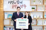 코리아타임뉴스 윤광희 기자 | 양주시가 31일 엠엠씨앤지로부터 연말을 맞아 이웃돕기 성금 500만 원을 기탁받았다. 이날 기탁식에는 오경옥 대표가 참석했으며, 기탁된 성금은 경기 사회복지공동모금회를 통해 양주시 취약계층 지원에 사용될 예정이다. 오경옥 대표는 “한 해를 마무리하는 뜻깊은 날, 우리 주변의 어려운 이웃들에게 도움을 드리고자 기탁을 결정했다”며, “기업 경영과 함께 지역 사회 봉사 현장에서 직접 보고 느꼈던 어려운 분들의 고충을 덜어드리는 데 이 성금이 작게나마 보탬이 되길 바란다”고 전했다. 시 관계자는 “2025년의 마지막 날을 아름다운 나눔으로 장식해주신 오경옥 대표님께 진심으로 감사드린다"며, "지역 경제 발전에 이바지하는 기업인이자, 다양한 사회단체 활동으로 나눔을 실천하시는 대표님의 진심이 추운 겨울을 보내는 취약계층에게 큰 희망이 될 것"이라고 화답했다.