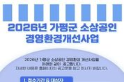 코리아타임뉴스 기동취재팀 | 가평군은 관내 소상공인의 지속경영 기반을 강화하기 위해 ‘2026년 가평군 소상공인 경영환경개선사업’ 대상자를 3월 6일까지 모집한다고 밝혔다. 이번 사업은 한국생산성본부와의 업무 협약을 바탕으로 추진하며, 노후 점포 환경 개선을 중심으로 실질적인 경영 여건 개선을 지원하는 데 초점을 맞췄다. 지원 항목은 △내부 인테리어 개선 △옥외광고물 교체 △CC(폐쇄회로)TV 설치 △키오스크 및 판매시점관리 시스템(POS) 기기 구매 등이다. 업소당 최대 300만원까지 지원하며, 지원 한도 초과분과 부가가치세는 신청자가 부담해야 한다. 지원 대상은 공고일 기준 가평군에서 사업자 등록 후 12개월 이상 영업 중인 소상공인이다. 사업자등록증상 개업연월일이 2025년 2월 27일까지인 경우 신청할 수 있다. 접수 기간은 2월 27일부터 3월 6일까지다. 현장 접수는 가평군소상공인연합회 사무실(가평읍 보납로 12, 구 KT&G 건물 1층)에서 진행하며, 우편 접수는 한국생산성본부 상생협력센터(서울 종로구 새문안로 5가길 32, 한국생산성본부 9층)로 하면 된다. 사업 공고문은