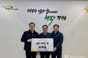 코리아타임뉴스 기동취재팀 | 가평군 가평읍 소재 ㈜백율은 최근 가평읍 행정복지센터를 방문해 취약계층을 위한 이웃돕기 성금 300만 원을 기탁했다. 이상훈 ㈜백율 대표는 “한파는 누그러졌지만, 아직 추운 겨울이 끝나지 않았기에 우리 지역의 취약계층 이웃들에게 조금이라도 도움이 됐으면 하는 마음으로 성금을 기탁하게 됐다”고 전했다. 장석조 가평읍장은 “이번 겨울 극한 한파가 지속되어 걱정이 많았는데, 이렇게 따뜻한 마음으로 소중한 성금을 전달해 주셔서 진심으로 감사드린다”며 “어려운 이웃들에게 기탁자의 마음이 잘 전달될 수 있도록 노력하는 행정복지센터가 되겠다”고 답했다.