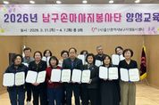 코리아타임뉴스 울산취재본부 | 울산 남구자원봉사센터는 7일 센터 대강당에서 교육생 13명이 참석한 가운데 ‘2026년 남구손마사지봉사단 양성교육 수료식’을 개최했다. 이번 교육은 총 3회의 이론 및 실기 과정을 통해 전문 역량을 갖추는 데 중점을 두고 진행됐다. 이날 수료한 교육생들은 향후 ‘남구손마사지봉사단’으로서 관내 경로당 자원봉사활동과 지역 행사 지원 등 다양한 현장에서 나눔 활동을 펼칠 예정이다. ‘남구 손마사지봉사단’은 지난 2024년부터 양성교육을 통해 활동을 시작했으며, 매년 15회 이상 정기적으로 활동 중이다. 최근 활동 인원이 5명 정도로 줄어 경로당 자원봉사 수요를 충족하기 어려워 이번에 새로이 손마사지봉사단 양성교육을 실시하게 됐다. 최영수 남구자원봉사센터 이사장은 “바쁜 일정 속에서도 열정적으로 모든 교육 과정을 마치고 수료하는 봉사자분들께 진심으로 감사의 인사를 전한다”며 “전문 기술을 갖춘 봉사단의 손길을 통해 지역사회 곳곳에 따뜻한 나눔 문화가 더욱 견고하게 뿌리내릴 수 있도록 앞장서 주길 기대한다”고 당부했다.