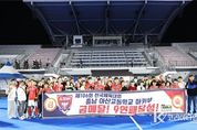 코리아타임뉴스 사회팀 | 아산고등학교 하키팀이 제106회 전국체육대회 하키 남고부에서 9년 연속 우승을 차지하며 대한민국 고교 하키의 절대 강자로서 위상을 다시 한 번 입증했다. 이번 대회는 전국의 시·도를 대표하는 하키 명문교들이 참가한 가운데 치열한 경쟁 속에서 진행됐다. 아산고는 16강부터 결승까지 전 경기에서 완벽한 경기 운영과 탄탄한 조직력을 바탕으로 무패 행진을 이어갔다. 16강전에서는 서울 용산고를 3대 1로 제압하며 기세를 올렸고, 8강에서는 전북 김제고를 5대 0으로 완파하며 공수의 균형을 보여주었다. 이어 4강전에서는 인천 계산고를 상대로 6대 2의 완승을 거두며 결승 무대에 올랐다. 결승에서는 경기 이매고와 맞붙어 치열한 공방전을 펼친 끝에 3대 1 승리를 거두며 전국체육대회 9연패라는 대기록을 달성했다. 아산고 선수단은 경기 내내 집중력을 잃지 않고 빠른 역습과 정교한 패스 플레이로 상대를 압도했다. 이성진 감독은 “매 순간 최선을 다한 선수들의 투혼이 만들어낸 값진 결과”라며 “어려운 상황에서도 끝까지 포기하지 않는 아산고의 정신이 오늘의 우승을 가능하게 했다”고 소감을 밝혔