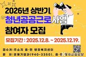 코리아타임뉴스 오영주 기자 | 거창군은 2026년 상반기 청년 공공근로사업 참여자를 12월 8일부터 19일까지 모집한다. 청년 공공근로사업은 구직 중인 청년들에게 한시적인 일자리를 제공해 생활 안정과 취업 역량을 돕는 공공 일자리 사업이다. 신청 자격은 만18~34세 이하 관내 청년으로, 본인과 가족 합산 재산이 3억 원 이하이며 중위소득 60% 이하일 경우 신청할 수 있다. 모집인원은 36명이며, 신청은 주민등록상 주소지 읍면 행정복지센터에서 방문 접수로 진행된다. 자세한 사항은 거창군청 누리집 ‘입법/공고/고시’란에서 확인할 수 있다. 선발된 참여자는 각종 행정업무 보조 등 다양한 공공분야에서 근무하게 되는데, 참여 청년들은 현장에서 실무 경험을 쌓고 직무 역량을 강화할 수 있을 것으로 기대된다. 한편, 2026년 상반기 일반 공공근로사업과 지역공동체일자리사업은 1월 중에 별도로 참여자를 모집할 예정이며, 이를 통해 다양한 계층의 군민들에게 일자리 참여 기회가 제공될 예정이다.