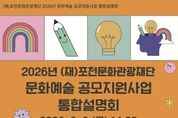 코리아타임뉴스 윤광희 기자 | 포천문화관광재단은 오는 2월 6일 포천반월아트홀 소극장에서 ‘2026년 문화예술 공모지원사업 통합설명회’를 개최한다. 이번 통합설명회는 지역 예술인과 예술단체를 대상으로 2026년 추진되는 문화예술 공모지원사업 전반을 소개하고, 사업에 대한 이해도를 높여 참여를 활성화하기 위해 마련됐다. 설명회는 2023년부터 매년 개최되고 있으며, 지역에서 활동하는 예술인들과 직접 소통하며 활동 과정에서의 어려움을 공유하고, 지원사업의 수행 방법과 개선 의견을 나누는 자리로 활용되고 있다. 2026년 포천문화관광재단이 추진하는 문화예술 공모지원사업은 총 4개 사업, 약 3억 2천만 원 규모로, 주요 사업은 ‘포천에 도착한 당신의 예술(포·도·당)’, 경기예술지원사업 ‘포천 모든예술31’, 경기 민간문화공간 활성화 사업 ‘포천 모든공간31’, ‘장애인 문화예술 진흥사업’이다. ‘포천에 도착한 당신의 예술(포·도·당)’은 지역 예술인의 지속 가능하고 자생적인 창작활동 기반을 마련하고 시민의 문화예술 향유 기회를 확대하기 위해 2021년부터 추진해 온 사업으로, 전문예술, 청년예술, 생