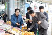 코리아타임뉴스 윤광희 기자 | 청양군은 농어촌 기본소득 지급 개시 첫날인 27일 청양장날을 맞아 김돈곤 군수가 청양전통시장을 방문해 직접 물건을 구매하며 현장 점검에 나섰다고 밝혔다. 군은 이날 오전 8시부터 농어촌 기본소득 1차 지급을 개시했다. 지급 대상은 지난 1월 말까지 신청을 완료하고 실거주 요건을 충족한 군민 2만 4,330명으로 1인당 월 15만 원의 청양사랑상품권이 지급됐다. 이날 장날을 맞은 시장은 평소보다 활기를 띠었다. 오전부터 장바구니를 든 주민들의 발길이 이어졌고 일부 상점에는 ‘청양사랑상품권 사용 가능’ 안내문이 눈에 띄었다. 상인들 사이에서는 “오늘은 분위기가 다르다”는 말이 오갔다. 김 군수는 채소 좌판에서 배추와 시금치 가격을 묻고 과일 가게에서는 제철 과일을 직접 고르며 상인들과 대화를 나눴다. 정육점에서는 “오늘 손님이 좀 늘었느냐”고 묻자 상인은 “아침부터 상품권 결제가 이어지고 있다”며 “장날답게 손님 발길이 이어져 기대가 크다”고 답했다. 김 군수는 청양사랑상품권 카드로 결제를 진행한 뒤 상인들에게 “이 돈이 시장에서 돌고 다시 지역 상권으로 흘러가는 구조를