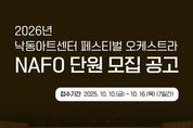 코리아타임뉴스 부산취재본부 | 부산 강서구는 서부산 최초의 클래식 전문 공연장인 낙동아트센터와 함께할 ‘낙동아트센터 페스티벌 오케스트라(NAFO)’ 단원을 공개 모집한다고 밝혔다. 이번 모집을 통해 강서구는 수준 높은 음악적 역량과 열정을 지닌 연주자들로 오케스트라를 구성해, 향후 낙동아트센터에서 품격 있는 클래식 공연을 시민들에게 선보일 계획이다. NAFO는 내년 1월 낙동아트센터 정식 개관 기념 무대에서 말러 교향곡 제8번, 오페라 아이다, 발레 백조의 호수 등 세계적인 명작을 연주할 예정이다. 이에 앞서 오는 12월 24일, 말러 교향곡 제8번과 베토벤 교향곡 제9번 4악장을 연주하는 프리뷰 콘서트를 개최해, 정식 개관 전부터 웅장한 음악의 울림을 선사하며 낙동아트센터에 대한 시민들의 기대감을 높일 전망이다. 모집 분야는 ▲오케스트라 악장 ▲수석 ▲단원 ▲기획지원단원이며, 만 18세 이상이면 누구나 지원 가능하다. 접수 기간은 10월 10일부터 16일 오후 5시까지로, 강서구청 홈페이지에서 참여신청서를 내려받아 전자메일로 제출하면 된다. 전형은 기획지원단원의 경우 면접, 오케스트라 단원의 경우