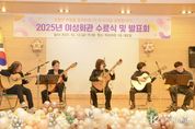 코리아타임뉴스 이아름 기자 | 횡성군은 12일 여성회관 대강당에서 강사와 수강생 등 250여 명이 참석한 가운데 2025년 여성회관 교육 수료식 및 발표회를 성황리에 개최했다. 올해 여성회관 교육프로그램은 4개 분야 31개 과목을 상하반기 각 4개월씩 운영하여 568명이 수료했으며, 수료식은 그간 수료생들의 성실한 참여와 노력을 격려하는 자리로 마련됐다. 2부 발표회에서는 기타교실을 포함한 총 6개 강좌가 다채로운 공연을 선보였으며 관람객들은 수강생들의 열정과 성과를 함께 나누며 큰 호응을 보냈다. 또한, 캘리그라피, 서양화, 섬유채색, 핸드페인팅, 어반스케치 등 5개 강좌의 작품 전시회가 함께 열려 수강생들이 그동안 갈고닦은 솜씨를 선보이는 기회가 됐다. 특히 자격증 취득 과정에서는 올 상반기에만 GTQ포토샵 1급 등 4개 과목에서 총 26개의 자격증을 취득했으며, 연말 자격시험 결과까지 더할 경우 수료생들의 자격 취득 실적은 더욱 늘어날 전망이다. 김홍석 군 가족복지과장은 “여성회관 교육 프로그램을 통해 군민들이 새로운 지식과 기술을 배우며 자기계발과 역량을 높이고, 건전한 여가와 문화를 향유할